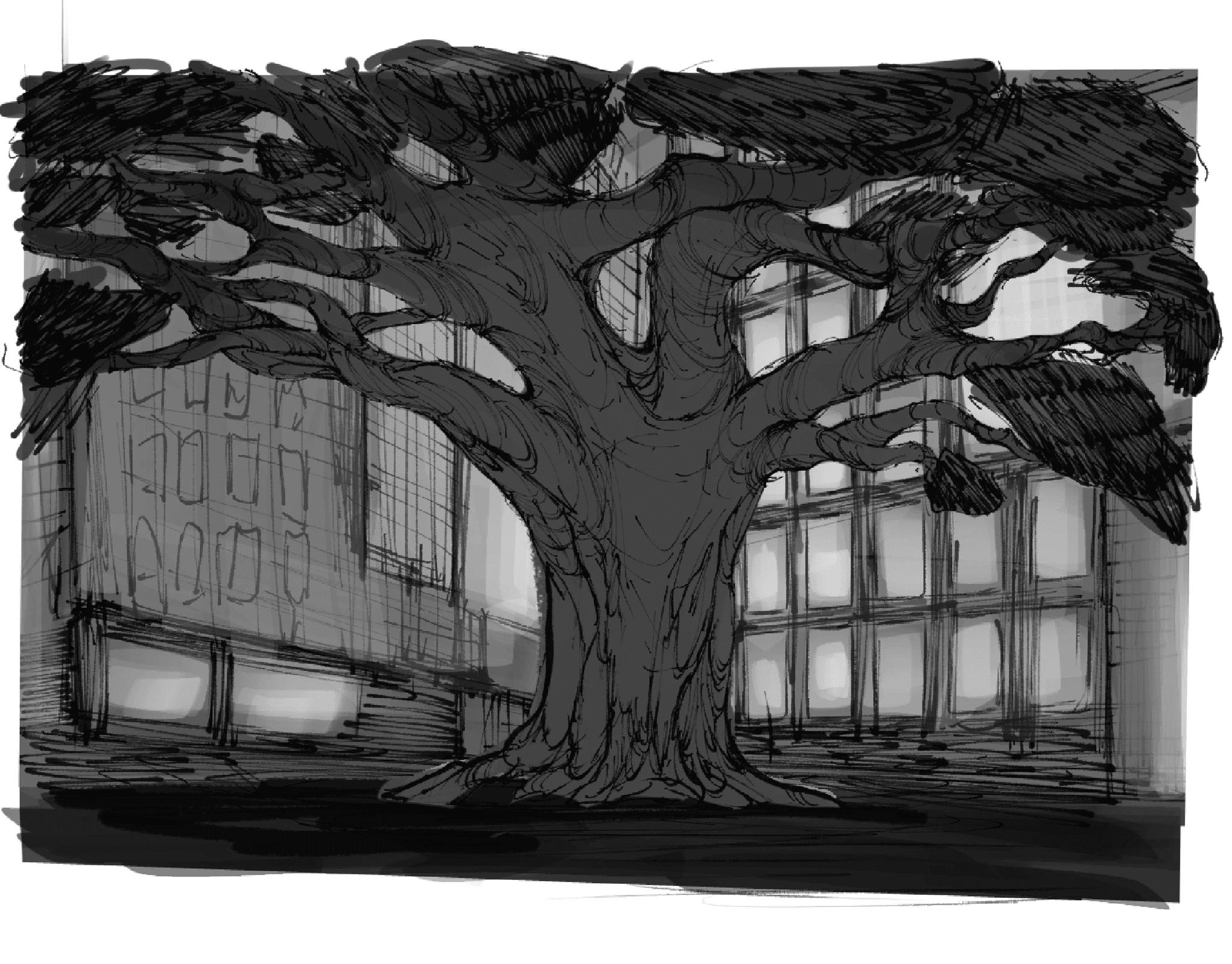 This is my AR sketch, I decided to work with the ideas of a future where life has deteriorated to the point of extinction. This tree is one of the last and i treated as something sacred.